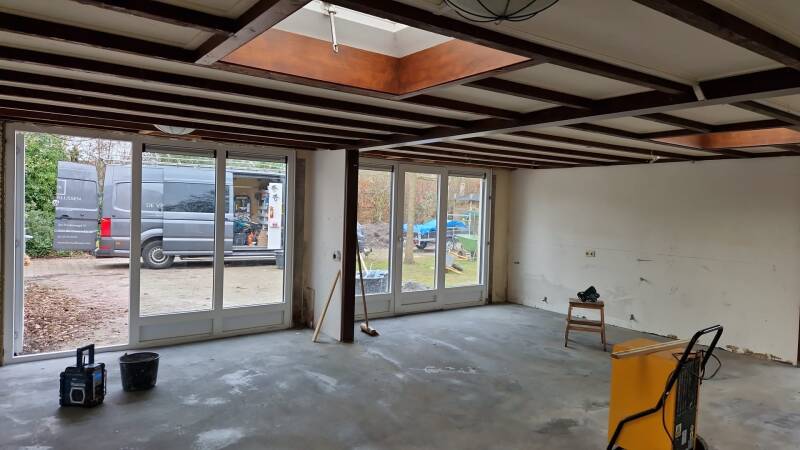 Wat begon als alleen plaatsen van kunstof kozijnen met een nieuwe afwerking aan de binnenkant werd een complete renovatie. We hebben tijdens het plaatsen de opdracht erbij gekregen om de muren van de oude keuken te verwijderen en 1 grote woonkamer te realiseren.
