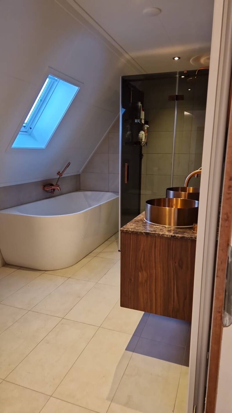 We hebben voor dit gezin een badkamer en eenwc renovatie mogen uitvoeren. Met een touch of koper