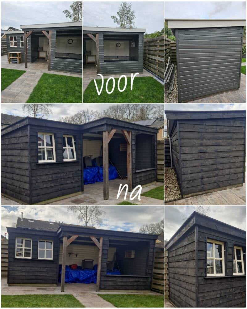 Tuinhuis rondom opnieuw bekleed en nieuwe boeidelen.